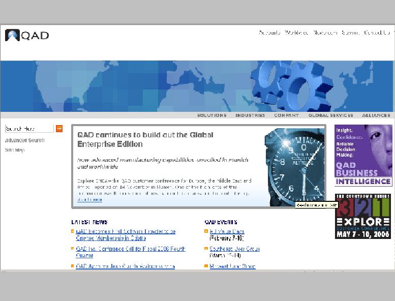 QAD is Manufacturing/Supply ChainQAD solutions provide manufacturers with solutions to manage the core business processes of their enterprise. We strive to offer the latest, most comprehensive software for global manufacturers to help them achieve seamless management, analysis, planning and control related to all aspects of the manufacturing entity.